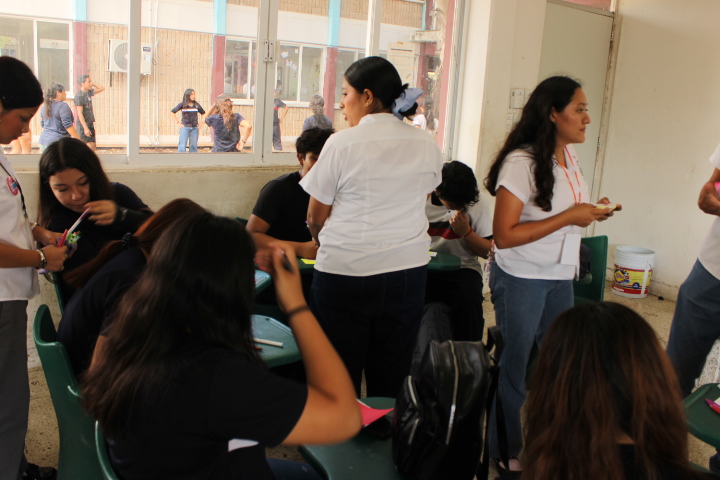 Durante una hora de convivencia lectora, adolescentes y normalistas compartieron cuentos breves, fragmentos de novelas juveniles y textos testimoniales que abordaron temáticas sensibles como la presión social, las adicciones, las amistades tóxicas y las decisiones de vida. A través de la lectura guiada, los círculos de reflexión, la creación de textos alternativos y la participación en un mural colectivo, los estudiantes reflexionaron sobre los valores del respeto, el autocuidado y la comunicación.