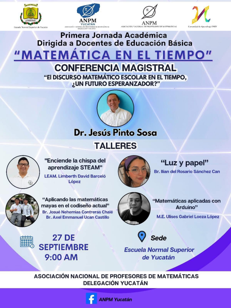 Sábado 27 de septiembre. Magna jornada académica sobre enseñanza de las Matemáticas en la Escuela Normal Superior de Yucatán. Acceso libre a la conferencia magistral y a los talleres (previa inscripción). ENSY: «Aprendiendo hoy para enseñar mañana.»